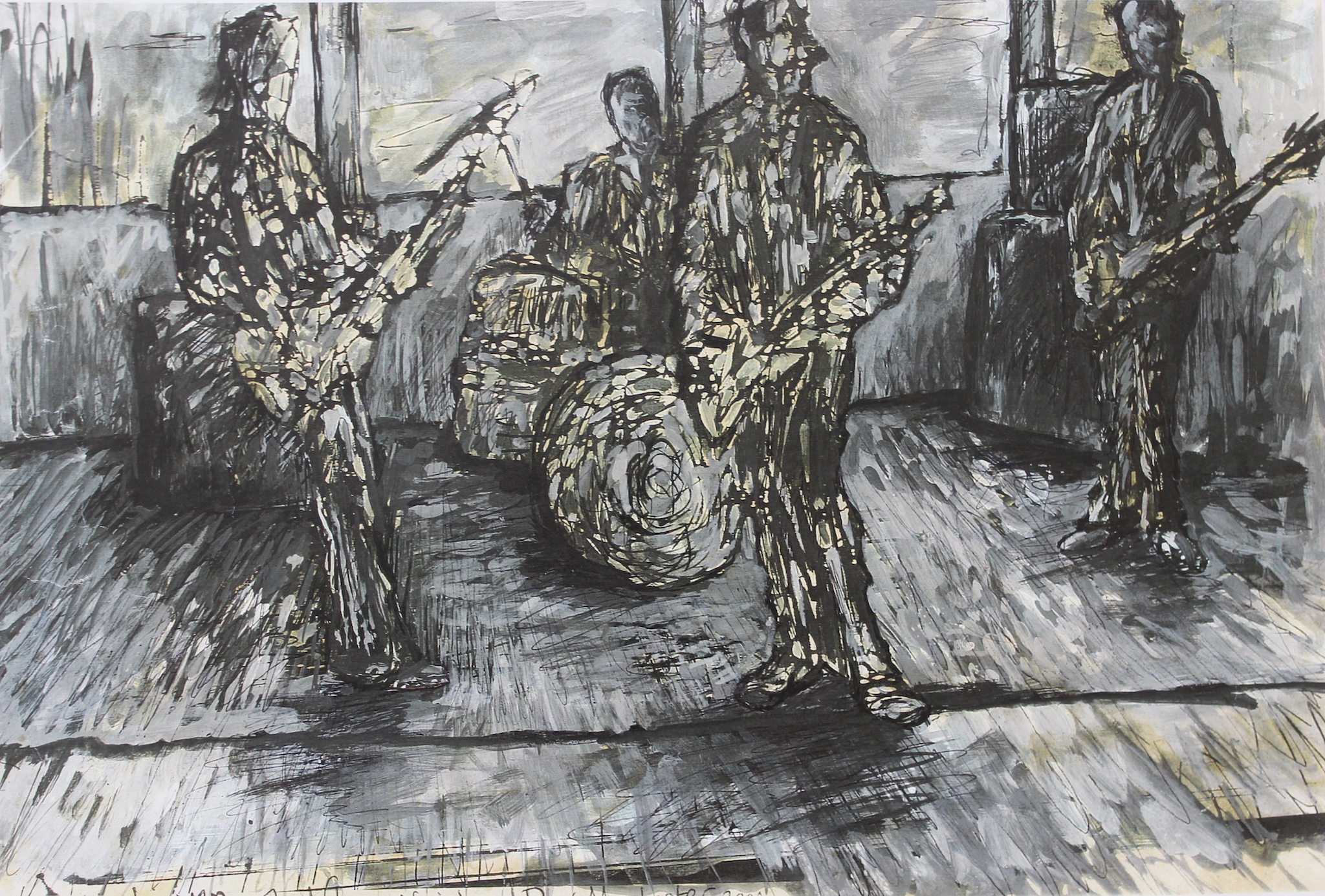 Haven, sketched rehearsing upstairs at Night and Day 2001. oil paint, ink.